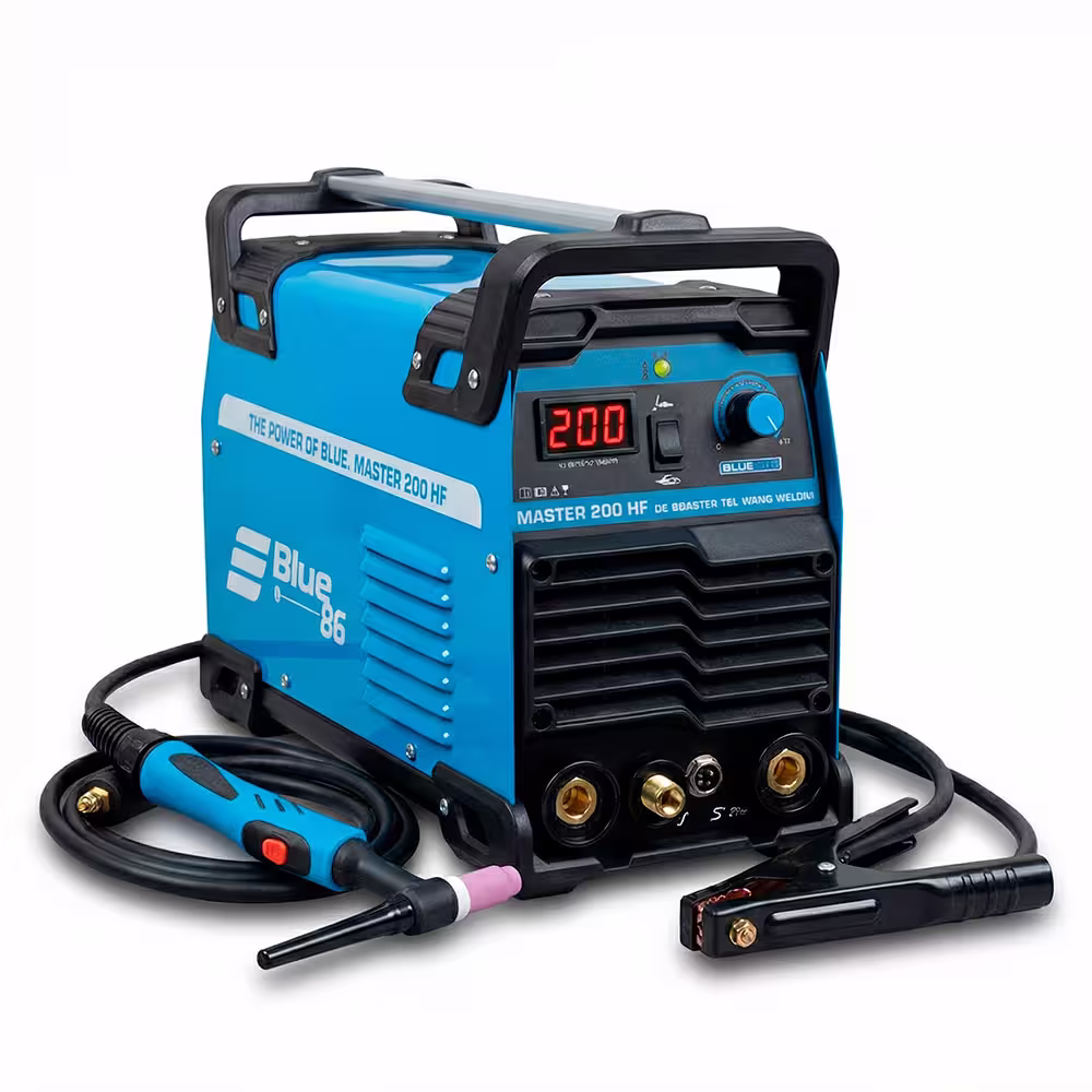 La FENIX200HF – BLUE86, Es un equipo monofásico (220V) sumamente eficiente, capaz de soldar sin pausas a 160 amperios (ciclo de trabajo del 100%). Combina la precisión del proceso TIG DC con la versatilidad del electrodo revestido (SMAW), cubriendo un amplio rango de potencia desde los 5 hasta los 200 amperios.